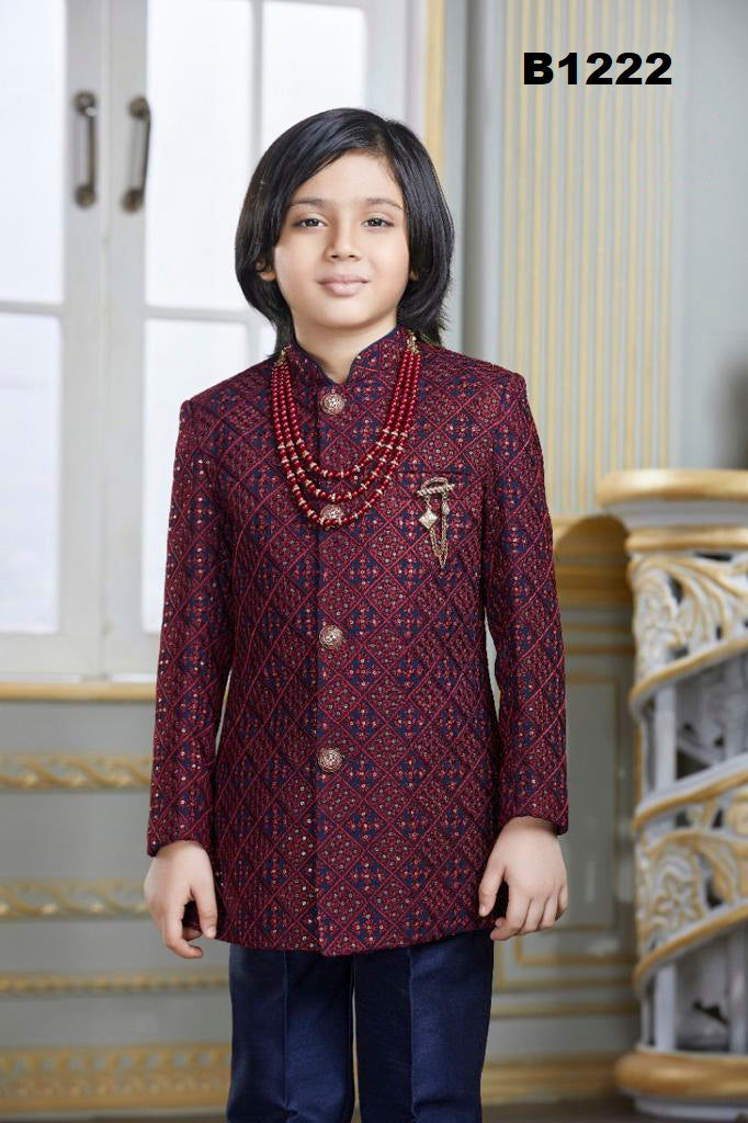 B1222 - Navyblue and Maroon Indowestern Sherwani Set