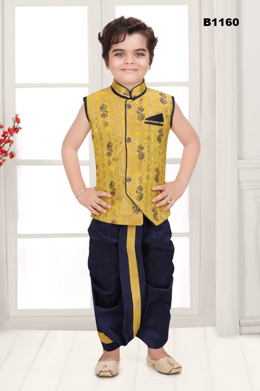B1160 - Traditional combo of yellow and Navyblue sleveless Kurta and Dhoti