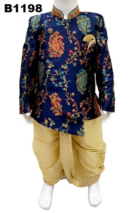 B1198 - Partywear indowestern Style Royal blue Benarasi silk Sherwani dhoti set