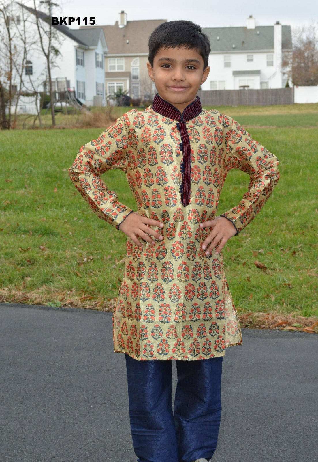 BKP115 - Raw silk Red block print Kurta Pajama set