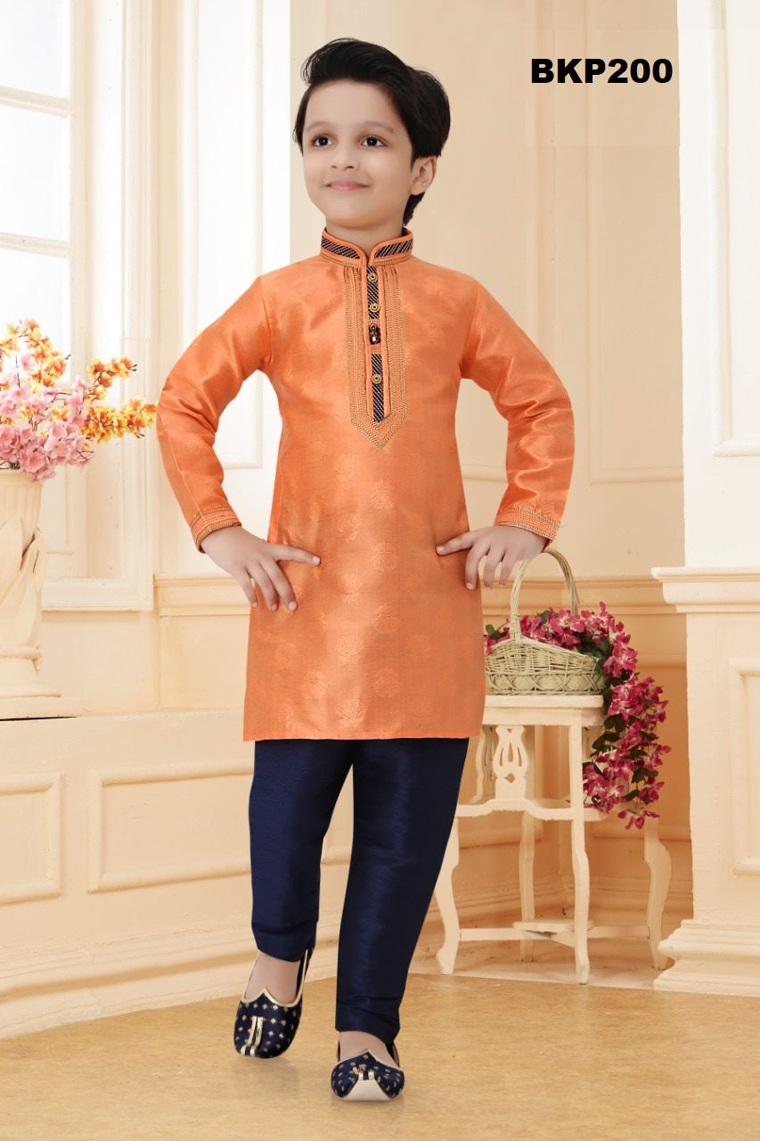 BKP200 - Boys partywear Orange and blue silk kurta pajama set