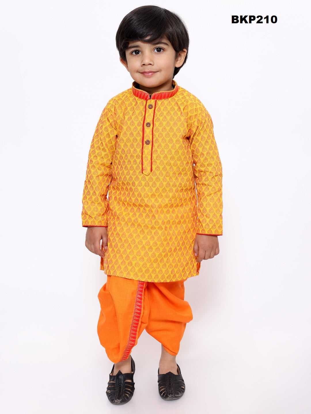 BKP210 - Toddler boys orange and yellow cotton kurta dhoti set.