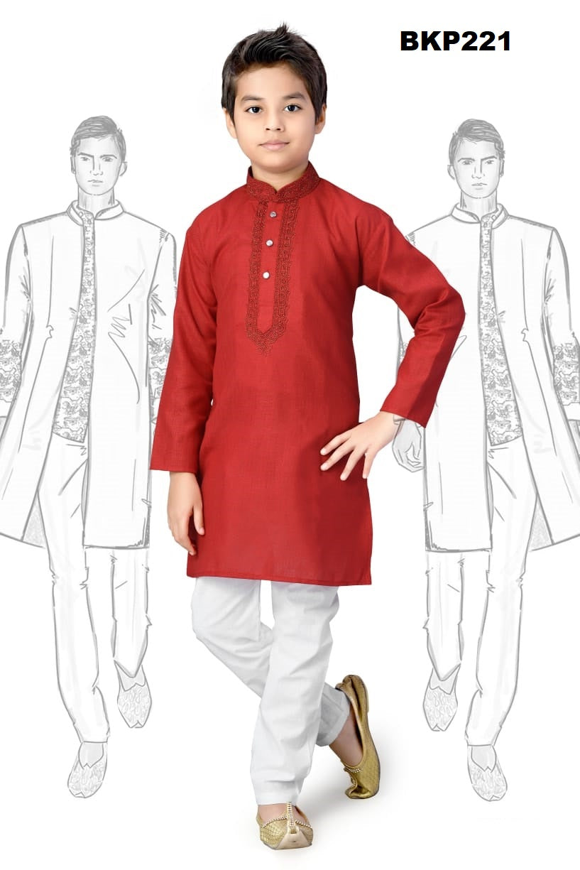 BKP221 - Brickred simple solid cotton kurta pajama set with embroidered neckline