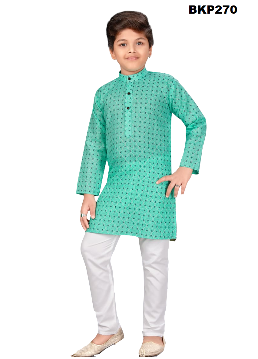 BKP270 - Mint green boys simple cotton kurta pajama set