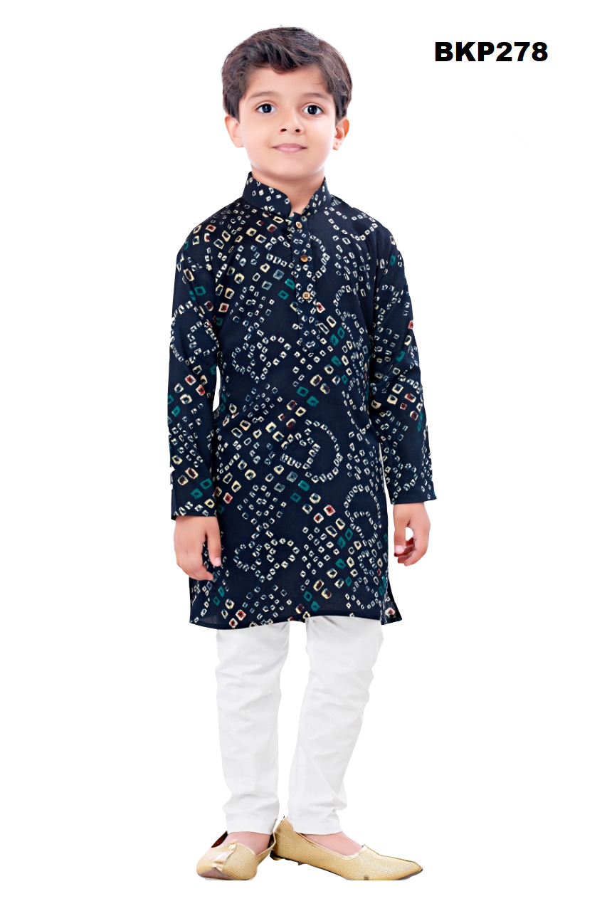 BKP278 - Bandhini printed navyblue cotton kurta pajama set for boys