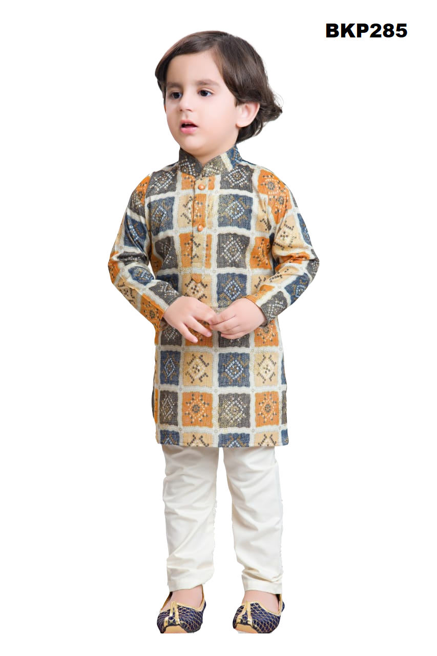 BKP285 - Orange hued bandhini printed rayon kurta pajama set for boys