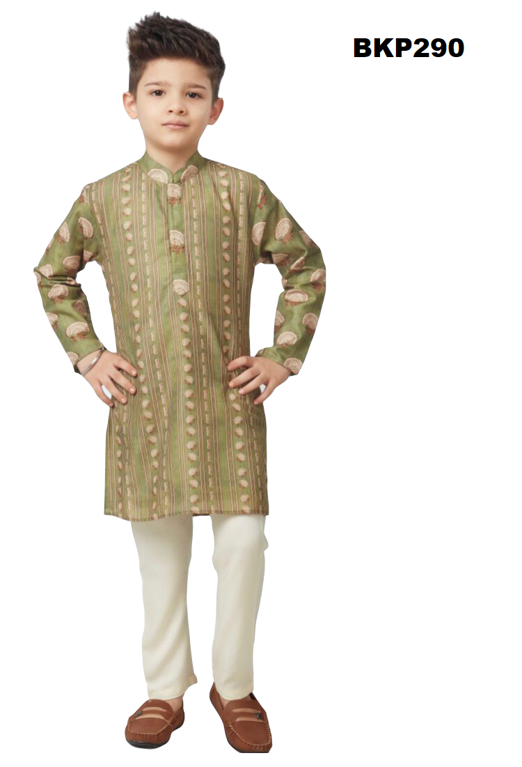 BKP290 - Light green hued silk kurta pajama set in a trendy flower print