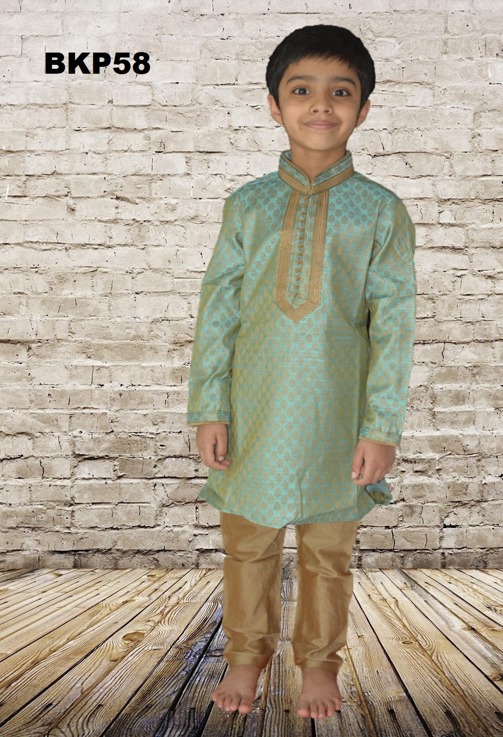 BKP58 - Boys Blue Brocade Festive wear Kurta Pajama set