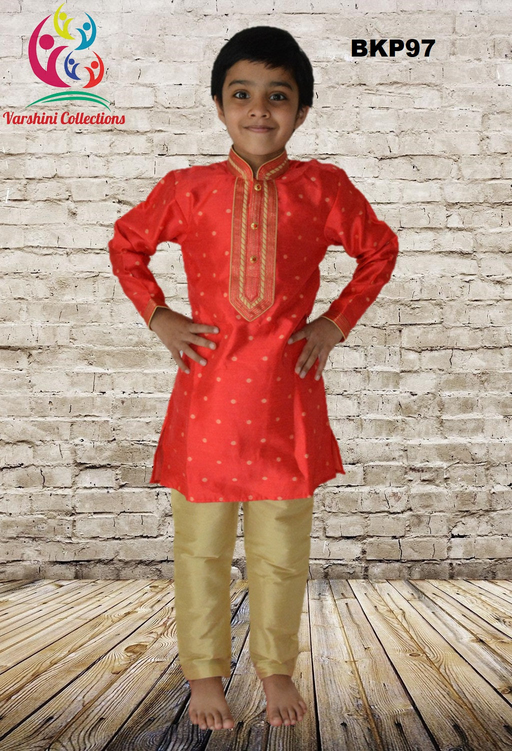 BKP97 - Fancy Tomato Red Printex Silk Party Wear Kurta Pajama