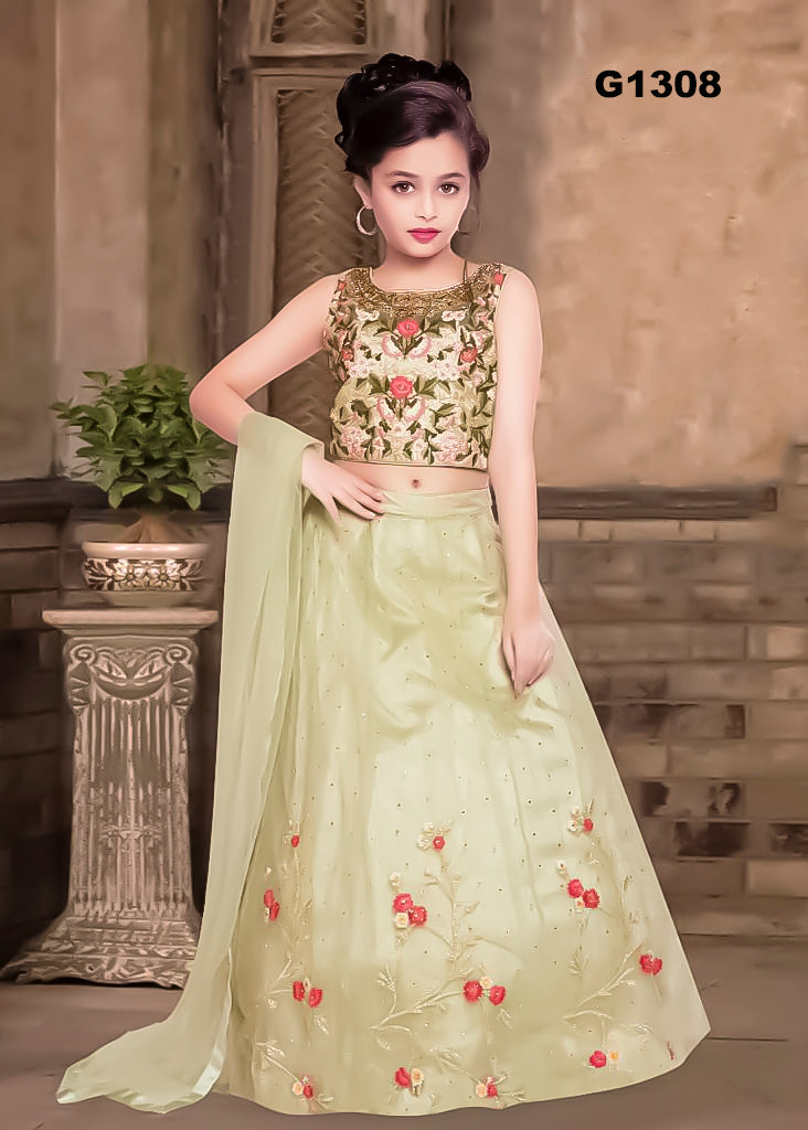 G1308 - Light Green embroidered Girls Lehenga Choli