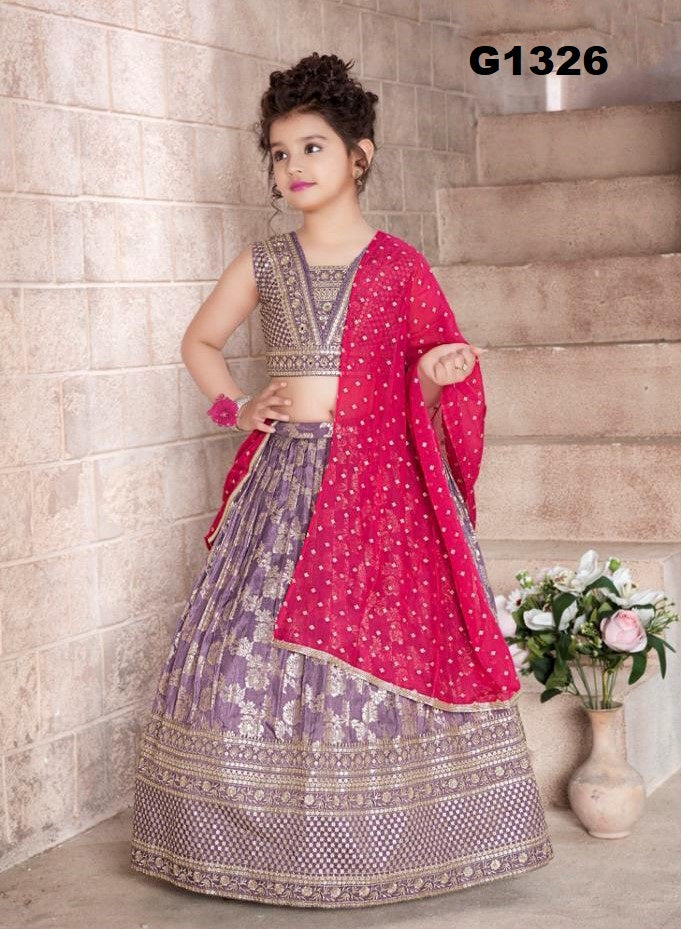 G1326 - Lilac Banaras Girls Lehenga choli set