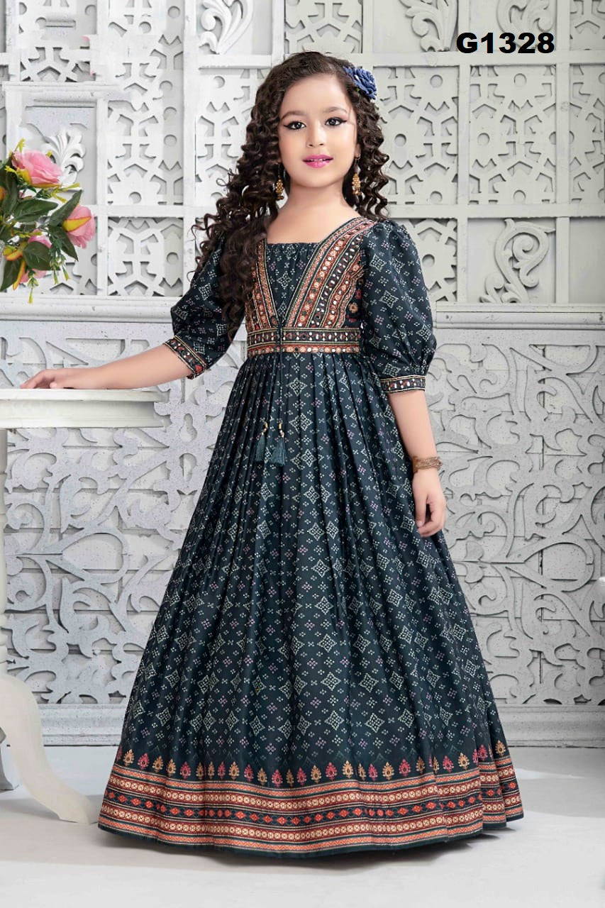G1328 - Navy blue bandhini printed Girls Long Dress