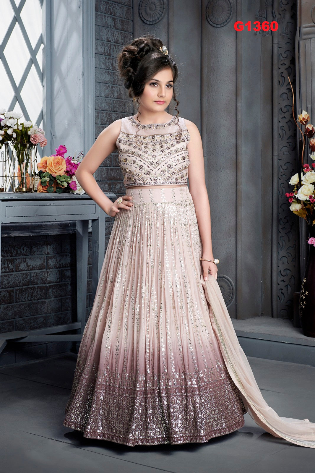G1360 - Dual Shaded Beige and Brown Sequence Partywear Lehenga