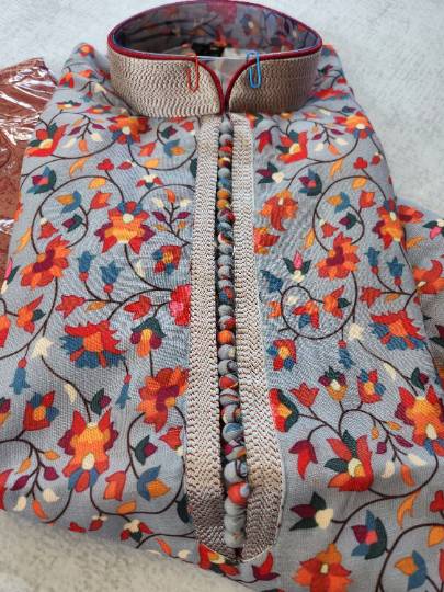 MK409 - Grey and Maroon Pashmina printed cotton Kurta pajama set