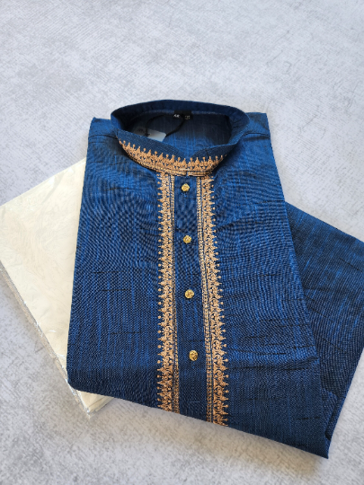 MK413 - Royal Blue cotton Kurta pajama set with embroidery around the neck