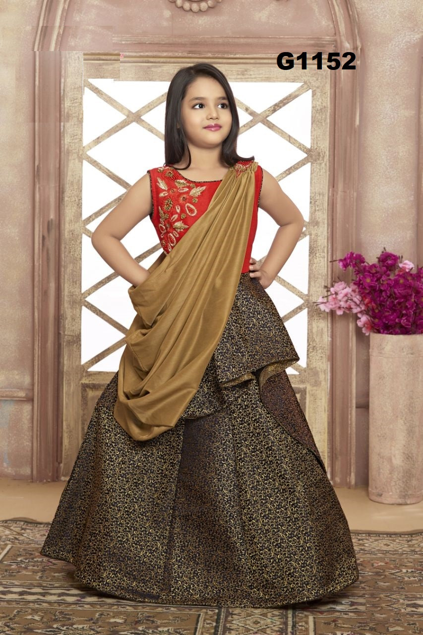 Elegant in design, this red , black and gold long gown is designed such that the yoke part shares the red hue embroidered with zardosi thread and beads and the botton part is brocade fabric all over layer to make an elegant design.. a pleated dupatta is attached to the gown which is removable.. detached sleeves are included..