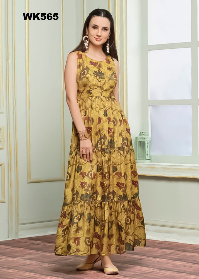 WK565 - Mustard yellow Kalamkaari Printed Long Kurti