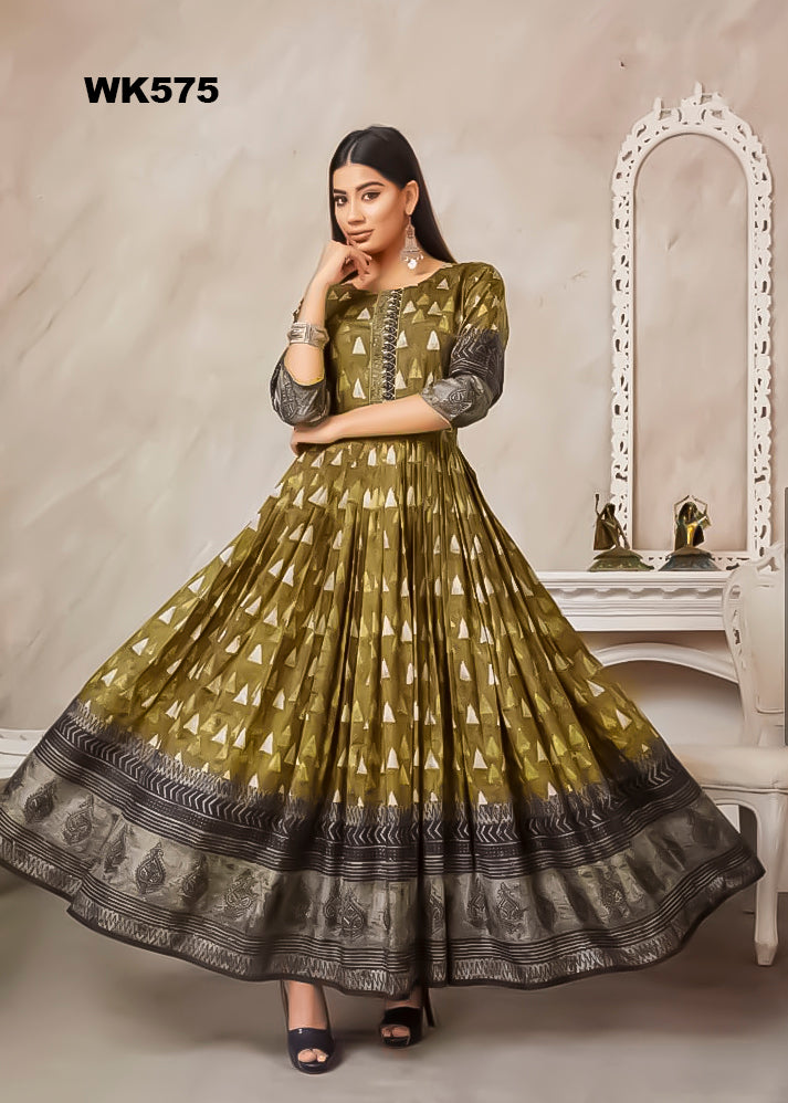 WK575 - Geometrical Printed Muslin Silk Anarkali Kurti